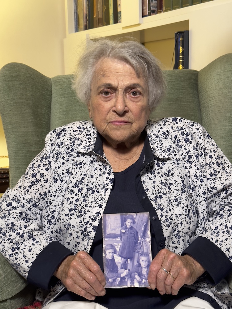 Miriam remembers that the world of her happy childhood changed when they had to move from their flat in Suche myto 12 to a flat in Judenstraße and she saw Jewish citizens being taken out of the synagogue on Shabbat to scrub the pavements while Slovaks standing by laughing. Two of her siblings – Marci and Noemi – were sent to relatives in Hungary where Miriam’s parents thought they were safer – Miriam never saw them again. Her oldest sister Bracha went on Aliyah in 1939 and tried to organise her family’s emigration to Palestine. However, they were rejected at the Swiss border and returned home. Her father lost his business and take on any labour he could find to provide for the family. When life in Bratislava became too dangerous, the family relocated to Nitra where Olga’s family lived. One of her Olga’s sister’s had a business that made corsets and one day, when the family’s deportation was imminent, the aunt’s apprentice’s boyfriend – who was actually a Hlinka Guard – helped to save the whole family.