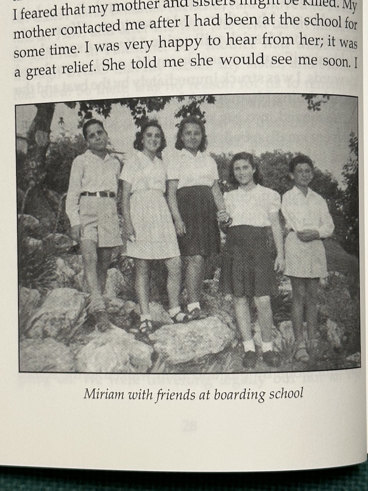 In 1946, her sister in Israel organised immigration for Miriam, her mother and her sister. Miriam was sent to a boarding school Kfar HaNoar HaDati because her mother found work as a cook for the Knesset. Miriam did not find the transition easy, as she had to learn the language first. After graduation, she joined the IDF and then afterwards trained as a teacher. When she was offered a position as the Israeli representative of a Jewish agency in Ireland, she went as a shaliach to Belfast.