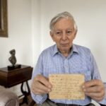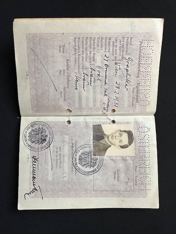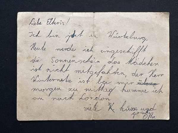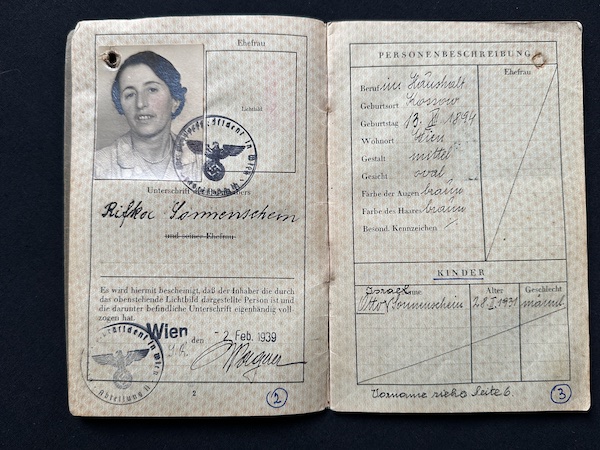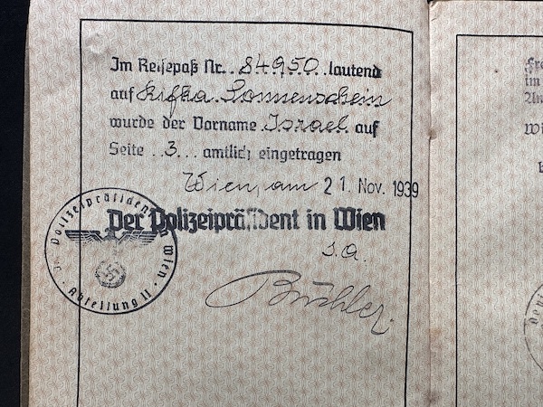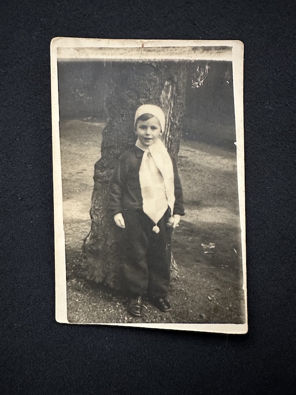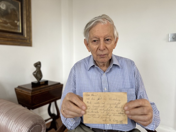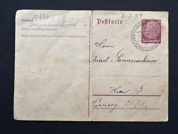During the November Pogrom (Kristallnacht) his father was taken to Dachau but his mother bribed someone at the Gestapo Headquarters and he was released. At this point they realised that the family had to get out of Austria. His father sent a photo of Natan to a business contact in London in order to find a foster home for him. The Tober family in Bow, London, who already had five children decided to take him in. Natan arrived on 6 July 1939 in London on a Kindertransport. He remembers saying goodbye to distraught parents at Vienna’s main station and despite his young age having to look after an even younger boy during the voyage. His father gave him pre-paid postcards to post on his voyage and Natan shows one of these during the interview which was mailed from Frankfurt.