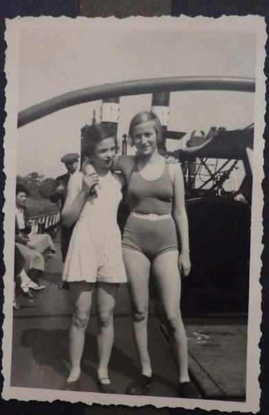In March 1939 Ruth and her mother first went to Berlin and then took the American ship SS Manhattan to Southampton via Le Havre. Her brother had managed to relocate to Juan le Pins in the South of France to train in the hotel business. When they arrived in Southampton, the father waited for them, as he had come to the UK by plane. Very soon after their arrival, Ruth was sent to Bunce Court in Kent. Her school was later evacuated to Wem (Shropshire) to Grove School. Both her parents were interned on the Isle of Man.
