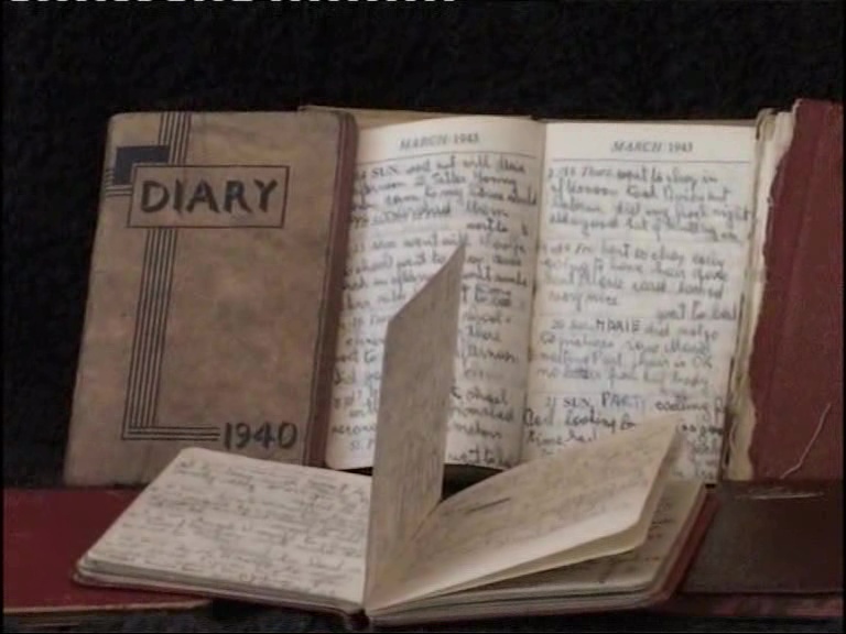 RE: Diaries. "These are my diaries from 1940. I kept diaries up until 1997 which I had to stop because I lost part of my sight. Everything I wrote is true and anybody is allowed to read it. There are no secrets."