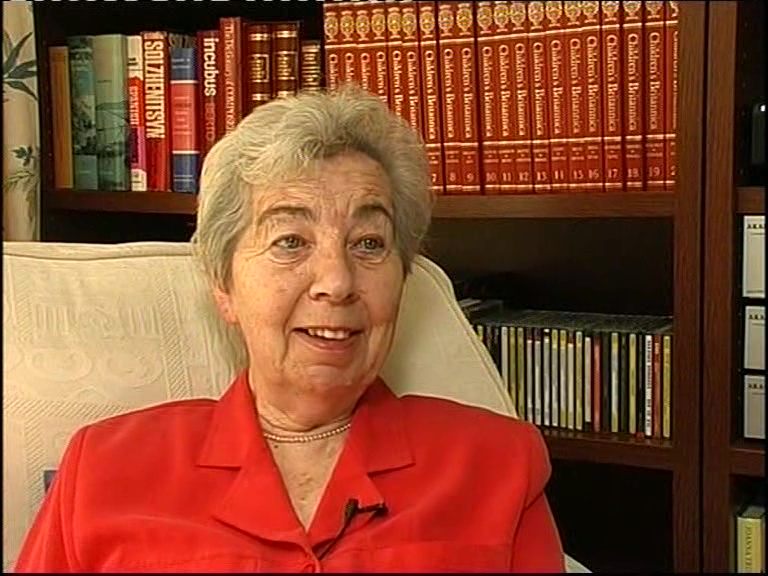 I remember this friend I used to go to school with, who lived around the corner, called Naomi. Now they were very, very Orthodox. To the extreme. Well, we used to think it quite ridiculous, because I’d come home from school with her on a Friday and she’d say, you can come and play, but you’ve got to help me because I’ve got to tear up all the toilet paper, because they weren’t allowed to tear anything on a Saturday. And I thought, you know, I really thought this was ridiculous. And all sorts of little things. All the lights had to be switched on, or the neighbour came and did all the cooking for them and my father was always quoting ‘Thou shalt not work, nor thy maid, nor thy manservant’. And what were they doing, and they were doing just that so he didn’t hold with any of that. But Naomi looked very, very Jewish, Semitic, shall we say, rather than Jewish and coming home from school from the station we’d have bricks thrown at us by youth– Hitler Youth boys. And that frightened me and I remember coming home and really being very upset, and my mother tried to calm me down, and I said, I don’t think I’ll go home with Naomi any more. And I felt a traitor, really. Because here was my friend, and I didn’t like to go home with her any more, I was looking after my own safety. And I used to make excuses and go home a different way, or go to school a bit earlier, on an earlier train, but I still went to her house to play with her. But I really didn’t feel comfortable with myself.