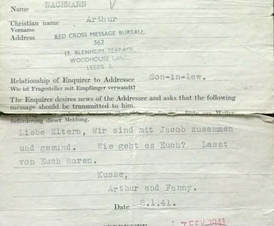 We didn’t know where my father was, we had no idea. My father came to England in June or July of 1939. When we arrived, we were put into a hostel, and the first thing my mother did was to go round the men’s hostels to see if anybody knew. She went with a photograph, if anybody had seen him, heard of him, knew of him, knew what had happened to him. ‘Cause I mean that’s what people did. And she knocked on this door, in this Highams [Lane] hostel. And my father opened it. And that was- That is quite remarkable, isn’t it? And that’s how they found each other.