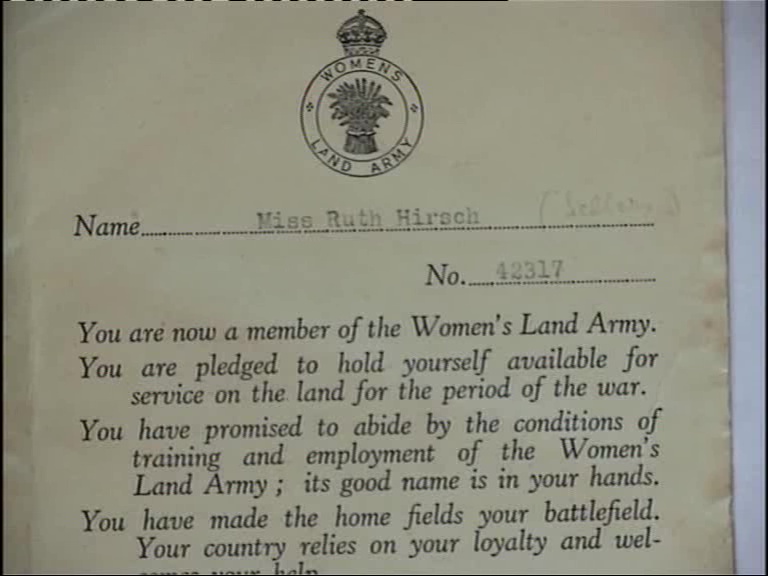 RS: Land Army registration card