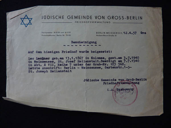 RW: "This is a note from the Jewish Community in Berlin to say that my grandfather