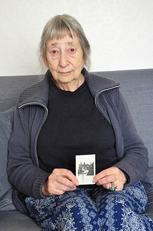 My room [postwar in Reading] was tiny. Their room had a double bed, our eating table, their trunks. Our 'everything else' room. We stayed 8 years. My mother had to fit in with the owner: cooking when the owner wasn't cooking–dreadful for them. I'd sit in the shed in the garden mostly. I organised a couple of metal bars, so if somebody banged them, I'd know. I made it my little den. It was only a tiny little shed. I would sit & read. My mother would leave me a tea in a little round tin. That Gollancz leaflet? 'Nowhere to hide their heads' that was published at the end of the war, which my parents hid. This yellow pamphlet about concentration camps. I found it & I read it & I- absolutely terrified.